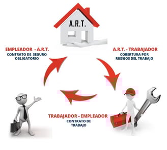 El sistema de riesgos del trabajo, pone en cabeza de las Aseguradoras de Riesgos del Trabajo (A.R.T.), o los empleadores autoasegurados, en su caso, la cobertura a cargo del empleador mediante el pago de una prima mensual, un contrato de seguro en donde los beneficiarios son los trabajadores, Cubriendo el ciento por ciento de los infortunios laborales que sufran estos últimos.